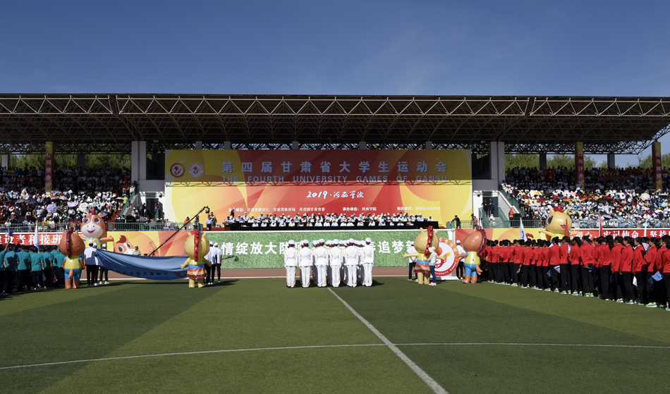 7月16日上午,由甘肃省教育厅、甘肃省体育局、共青团甘肃省委员会主办,河西学院承办,张掖市政府协办的第四届甘肃省大学生运动会开幕,来自全省43所高校的4000余名运动员参赛。甘肃省政府副秘书长贾宁宣布运动会开幕后,河西学院为观众献上了精彩的文艺表演。天水师范学院代表团团长、校长安涛,副团长、副校长、校体委主任安建平出席开幕式。第一批抵达参赛的68名运动员、教练员、领队和工作人员参加开幕式并代表学校代表团入场。