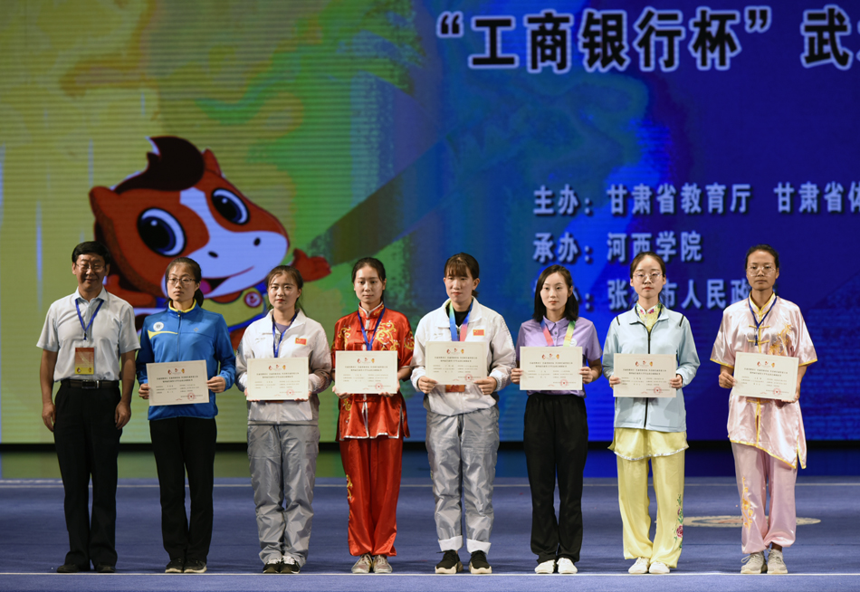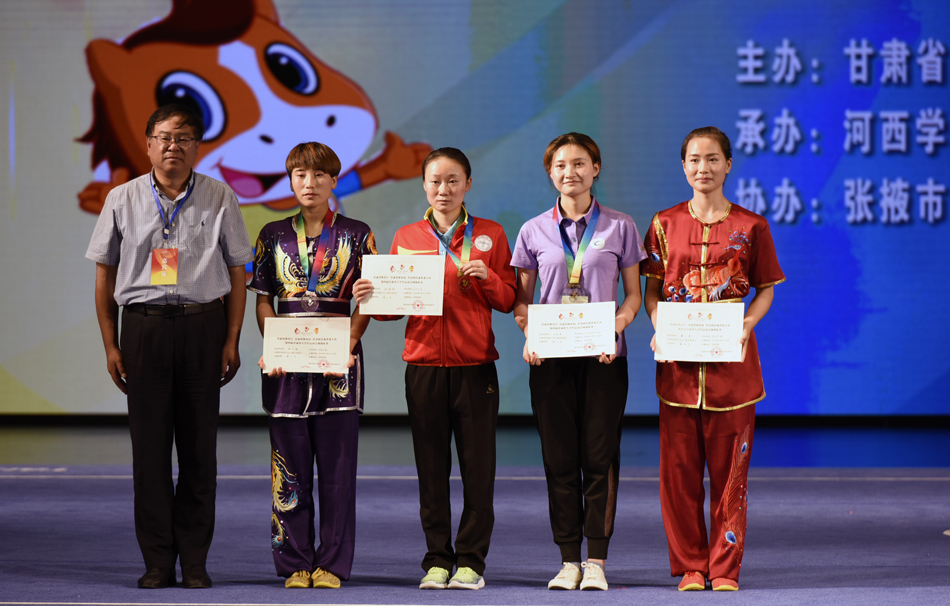 其中,文学与文化传播学院17级汉语言文学5班王爱荣获女子甲组自选棍术金牌;体育运动与健康学院17级体教2班王凯龙荣获男子乙组自选枪术银牌;体育运动与健康学院17级社体1班包增娃荣获乙组女子自选太极拳银牌;音乐舞蹈学院16级舞蹈班舞蹈学专业李芮僮荣获女子甲组自选枪术银牌;体育运动与健康学院17级体教1班薛晓暄荣获男子乙组自选南棍铜牌;体育运动与健康学院16级体教2班王宏英荣获女子乙组自选南刀铜牌。乙组团体获得第四名。
