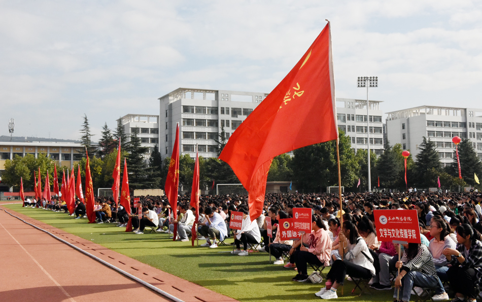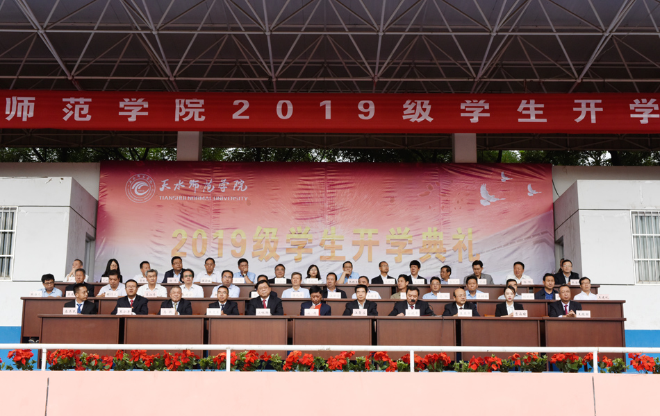 9月6日上午,天水师范学院2019级新生开学典礼在田径场举行。校长安涛,党委常委、副校长汪聚应、汪咏国、王文东,党委常委、统战部部长崔亚军,党委常委马超出席典礼。典礼由党委常委、副校长安建平主持。